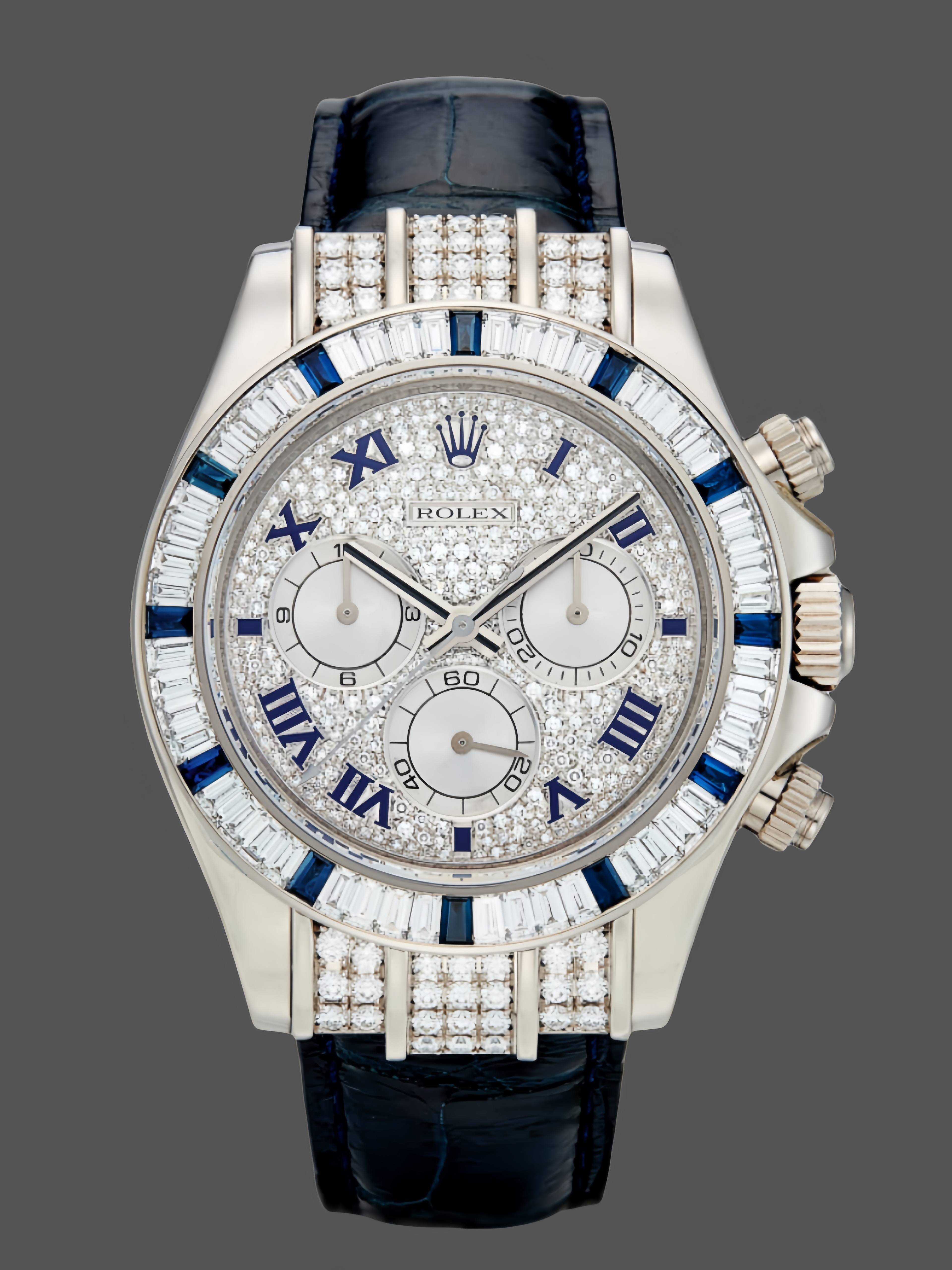 Rolex Daytona 116599 pave diamond dial Blue Leather Strap 40mm Mens Replica Watch