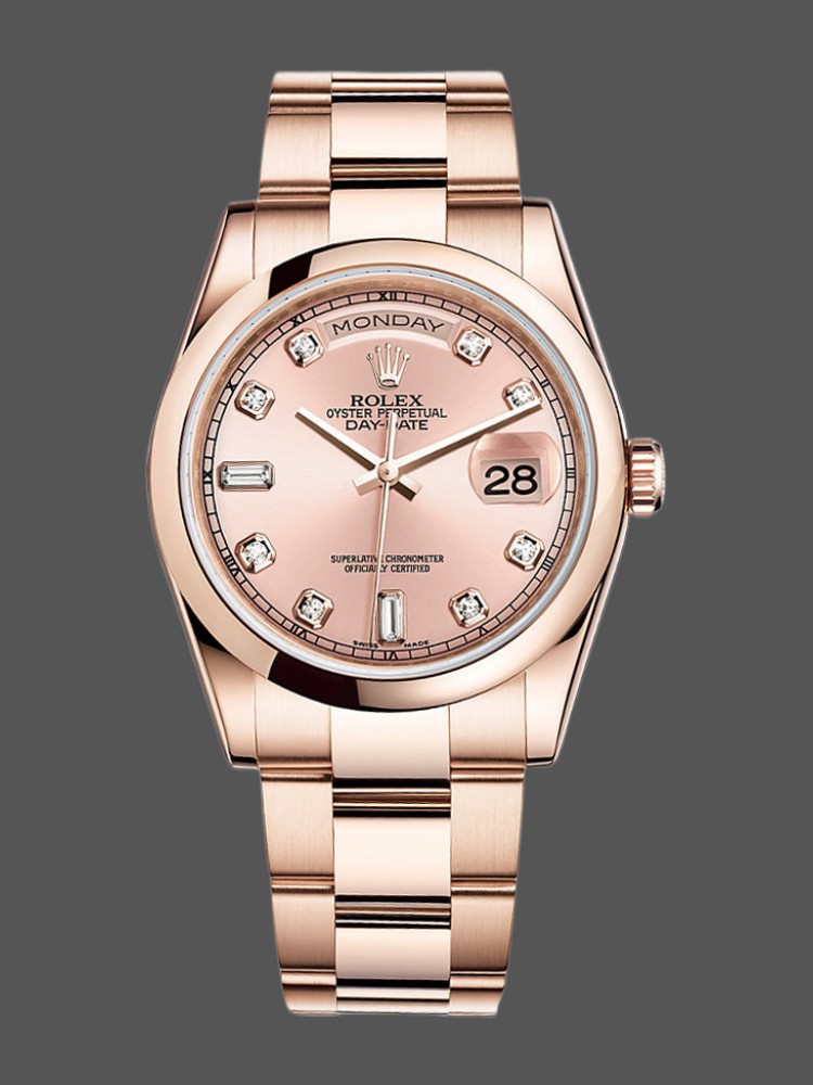 Rolex Day-Date 118205 Rose Gold Pink Diamond Dial 36mm Unisex Replica Watch