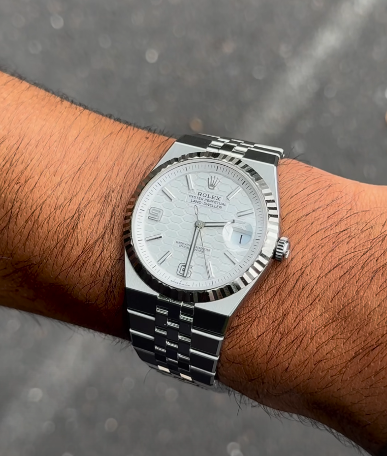 I was hesitant to buy a replica, but I'm so glad I did! This Rolex Land Dweller looks and feels amazing. The white dial is so crisp and clean, and the scratch-resistant sapphire is a huge plus. I've been wearing it every day since I got it. Highly recommend!