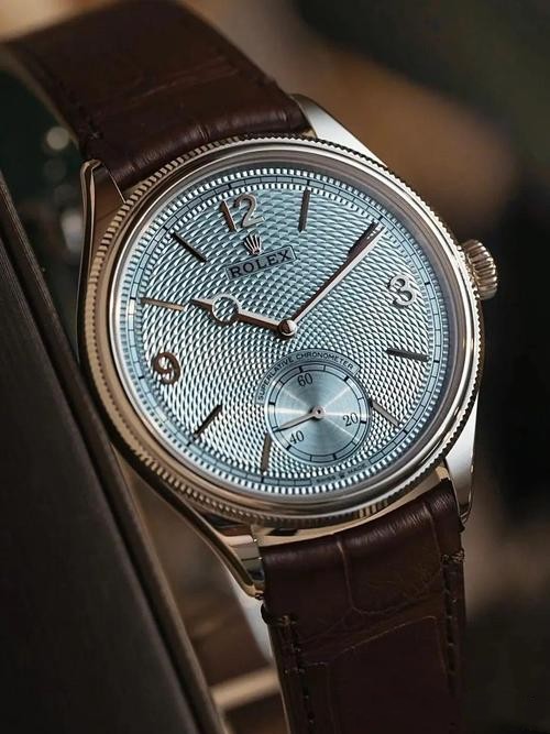 This Rolex replica is fantastic. The ice blue dial is so unique and the brown leather strap adds a touch of elegance.