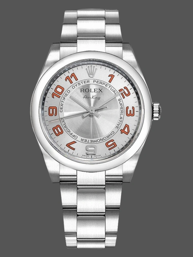 Rolex Oyster Perpetual Air-King 114234 Silver Orange Arabic Dial 34mm Unisex Replica Watch