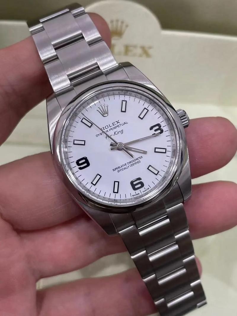 • Rolex Oyster Perpetual Air-King 114200 White Dial 34mm Automatic Unisex replica watch