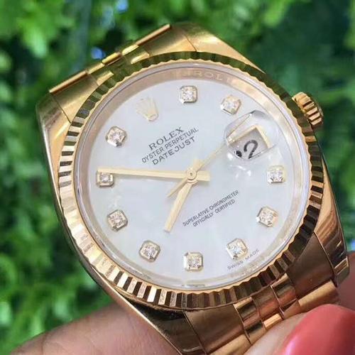 Brand: Rolex Model: Datejust Model Number: M278278-0010 Gender: Lady Case Case Shape: Round Case Diameter: 31 mm Oyster Architecture: Monobloc middle case, screw-down case back and winding crown Case Material: Yellow Gold & Stainless Steel Bezel: Fluted Winding Crown: Screw-down, Twinlock double waterproofness system Crystal: Scratch-resistant sapphire, Cyclops lens over the date Water Resistance: Asian:life waterproof, Swiss: 100 meters, 1:1 Clone: 300 m Case Back: Solid Dial Dial Color: Mother-of-Pearl Diamond Dial Dial Markers: Diamonds Markers Bracelet Band Material: Yellow Gold & Stainless Steel Band Name: Yellow Gold President Style Bracelet. Clasp: Concealed folding Crownclasp Movement Movement: Perpetual, mechanical, self-winding Precision: Asian: 30 - 60 sec/day, Swiss: 15 - 30 sec/day, 1:1 Clone: 2 - 5 sec/day Functions: Centre hour, minute and seconds hands. Instantaneous date with rapid setting. Stop-seconds for precise time setting Oscillator: Syloxi hairspring in silicon with patented geometry. High-performance Paraflex shock absorbers Winding: Bidirectional self-winding via Perpetual rotor Power Reserve: Approximately 55 hours Complications: Date Warranty: Asian: 1 Year, Swiss: 2 Years, 1:1 Clone: 5 Years Return Policy: If you are not satisfied with our product, please return your watch within 30 days for a full refund. Return Terms. -