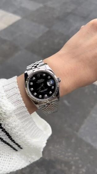 Starry jewels in the night - this replica of the Datejust 179174 condenses the moonlight of Geneva in a 26mm stainless steel case. The special vacuum ion plating restores the 904L steel texture that is exactly the same as the original, and after 32 hand-polishing, it presents a silky luster like a black swan feather. The 11 top-grade moissanites inlaid on the mysterious black diamond dial use nano-level positioning technology. The fire of each gem is calibrated by a spectrometer, and it will bloom under the light like the bright light of the galaxy stardust. The patented replica triangular groove bezel is laser-mapped, and the depth of each groove is accurate to 0.003 mm. When it rotates, it refracts a charming halo like the texture of a vinyl record. The Syloxi silicon hairspring of the customized 2235 movement is like a miniature star navigator. Through the sapphire crystal back, you can see the golden automatic rotor swinging gracefully like a crescent moon. The concealed crown clasp of the President bracelet adopts a magnetic adsorption design, and it makes a pleasant sound like a high-end jewelry box when opening and closing. This is the "Midnight Garden on the Wrist" described by Vogue magazine. Now you can wear this high-end custom aesthetic from the galaxy.