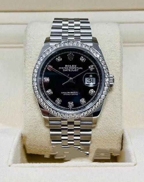 The Rolex Datejust 126284RBR Black Diamond Replica features a 36mm stainless steel case with Swiss modified 3235 movement that achieves -2/+2 second observatory accuracy. The black onyx dial contains 128 top-grade moissanite diamonds which have eight hearts and eight arrows cuts to produce an extraordinary light effect during business dinners. The outer ring features triangular grooves that use CNC five-axis precision carving technology to maintain 0.01mm precision with the original Geneva factory angles. The commemorative strap features a replica hidden crown buckle and its five rows of links receive mirror polishing. The 100-meter water-resistant performance enables you to handle every shining occasion from charity dinners to private parties with composure - acquire this "black diamond holy grail" that Silicon Valley's new rich people desperately want to buy so you can feel like a billionaire through this dark night star on your wrist.