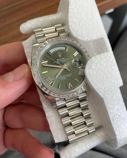 Brand: Rolex Replica Range: Day Date Replica Model Number: 228396TBR 0020 Gender: Mens Movement: Automatic, Swiss, Top Swiss Crystal: Scratch Resistant Sapphire Case Diameter: 40MM Case Shape: Round Case Material: Stainless Steel Bracelet Material: Stainless Steel Bezel material: Diamond Dial color: Green Water_resistance: Automatic:life waterproof, Swiss: 100 meters, TOP: 300 meters Availability: Item is in stock Return Policy: If you are not satisfied with our product, please return your watch within 30 days for a full refund. Return Terms. -