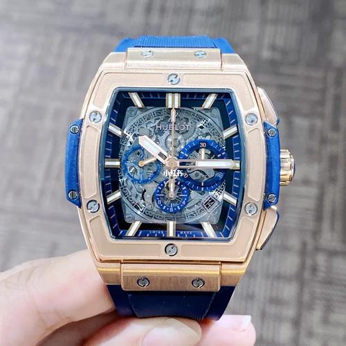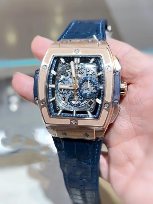 This Hublot Spirit of Big Bang is truly a masterpiece. The King Gold case is so rich and luxurious, and the blue leather strap adds a touch of elegance. The skeleton dial is fascinating, giving a glimpse into the watch’s inner workings.