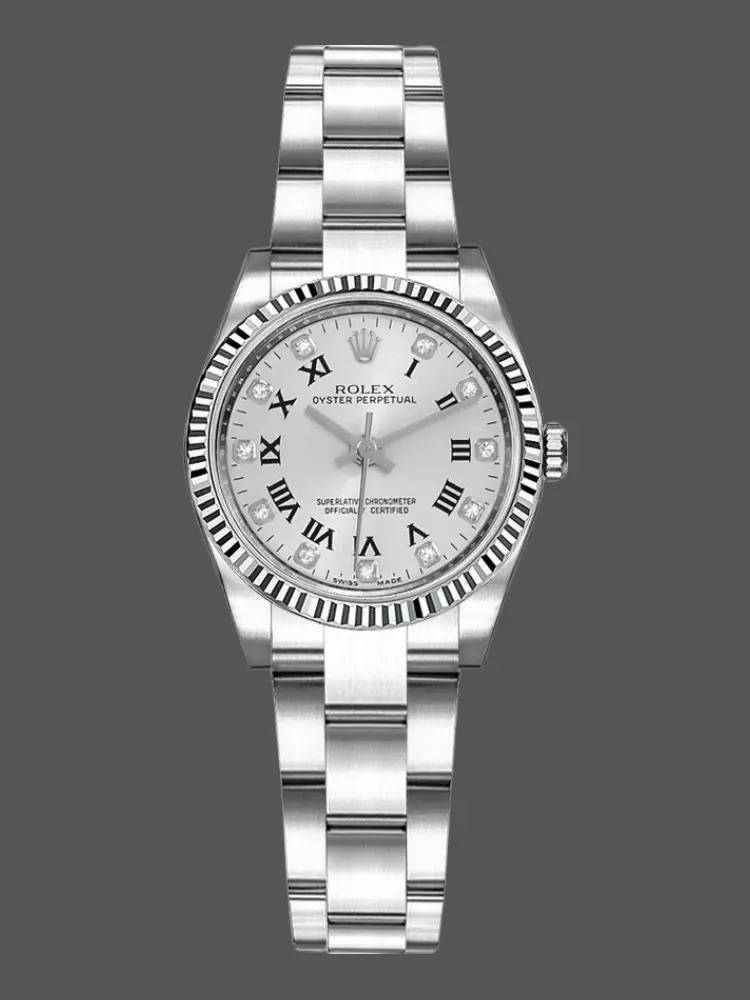 Rolex Oyster Perpetual 177210 Stainless Steel White Roman Dial 31mm Lady Replica Watch