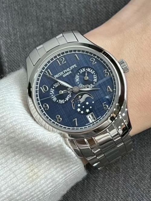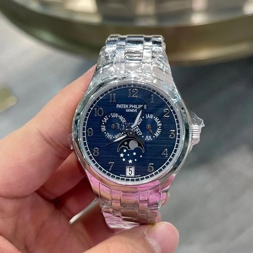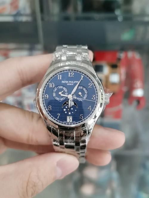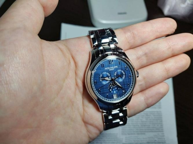Brand: Patek Philippe Replica Model: Complications Model Number: 4947/1A-001 Gender: Mens Case Case Shape: Round Case Diameter: 38 mm Case Material: 904L Stainless Steel Bezel: Stainless steel sloped bezel. Winding Crown: Screw-down, Twinlock double waterproofness system Crystal: Scratch Resistant Sapphire Water Resistance: Asian:life waterproof, Swiss: 100 meters, 1:1 Clone: 300 m Case Back: Solid Dial Dial Color: Blue Dial Dial Markers: Arabic Jewels: 34 Dial Type: Analog Bracelet Band Material: Stainless steel bracelet with a double push-button deployent clasp. Band Name: Five-bead chain strap Clasp: Fold-Over Clasp Movement Movement: Automatic Machinery Precision: Deviation: Asian (± 30 - 60 sec/day), Swiss (± 15 - 30 sec/day), 1:1 Clone (± 2 - 5 sec/day) Warranty: Asian: 1 Year, Swiss: 2 Years, 1:1 Clone: 5 Years Return Policy: If you are not satisfied with our product, please return your watch within 30 days for a full refund. See our return policy for details. -