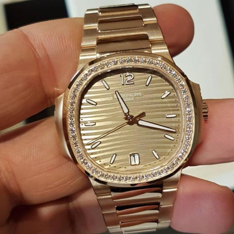 Brand: Patek Philippe Range: Nautilus Model Number: 7118 1200R 010 Gender: Lady Movement: Asian,Swiss,Top Crystal: Scratch Resistant Sapphire Case Diameter: 35.2 MM Case Shape: Round Case Color: Gold Case Material: Stainless Steel Crown: Screw Down Dial color: Gold Dial Markers: Index Dial Type: Analog Bracelet Material: Stainless Steel Strap Clasp: Folding clasp Water_resistance: Asian:life waterproof, Swiss: 30 meters, Top: 100 m Availability: Item is in stock Return Policy: If you are not satisfied with our product, please return your watch within 30 days for a full refund. Return Terms. -