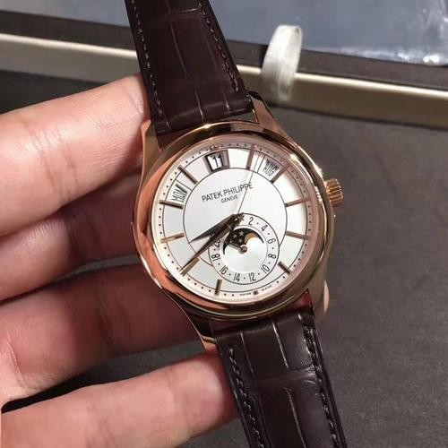 This 5205R replica has reconstructed the rules of top watches with a micro-mechanical matrix! The 40mm 904L stainless steel case is covered with 5μm rose gold ion plating, replicating the original warm luster but increasing the hardness by 300%. The gradient charcoal gray dial is equipped with a Super 324S automatic calendar movement, and the month/week/date display is accurately synchronized with the change of Wall Street's fiscal year. The 45-hour power reserve will never derail from the Aspen ski resort board meeting to the Hampton summer party! Under the sapphire crystal mirror, the spade-shaped hour markers are carved with diamond cutting technology, reflecting the halo of hedge fund level under the lights of the Beverly Hills dinner party. The crocodile-grain calfskin strap has a built-in quick release system, switching between private equity roadshow and helicopter cruise mode in 3 seconds. The 6-point moon phase disk reproduces the original star map of 1895, recreating the galaxy projection of the golden age of Swiss watchmaking in front of the floor-to-ceiling windows of the Manhattan penthouse.