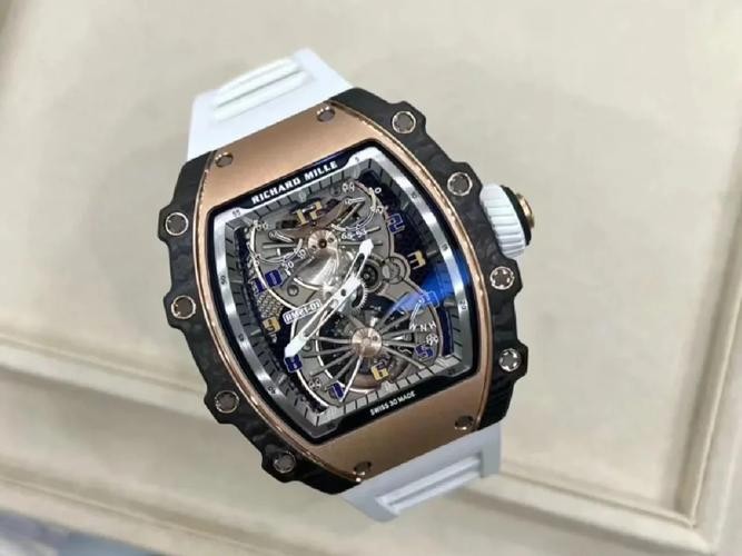 DetailBrand: Richard Mille Range: RM 021 Model Number: RM 21 01 Gender: Mens Movement: Automatic Crystal: Scratch Resistant Sapphire Case Diameter: 51 x 43 x 15 mm Case Color: Black & Rose Gold Case Material: Carbon Fiber Power Reserve: 70 Hours Crown: Screw Down Dial Color: Skeleton Dial Dial Type: Arabic Numerals Band Color: White Band Material: Rubber Strap Clasp: Folding Clasp Water_resistance: Asian:life waterproof, Swiss: 30 meters, Top: 100 m Availability: Item is in stock Return Policy: If you are not satisfied with our product, please return your watch within 30 days for a full refund. Return Terms.