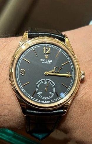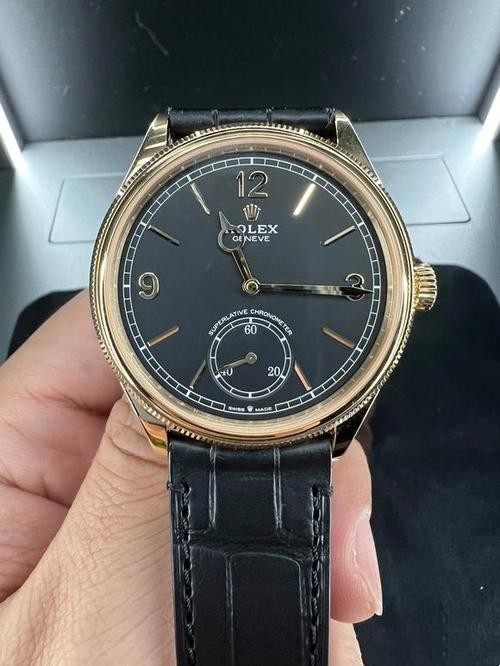 Brand: Rolex Replica Model: 1908 Replica Model Number: 52508 0002 Gender: Mens Case Case Shape: Round Case Diameter: 39 mm Case Color: Yellow Gold Case Material: Stainless Steel Bezel Color: Yellow Gold Bezel Material: Stainless Steel Bezel: Fluted Winding Crown: Screw-down, Triplock triple waterproofness system Crystal: Scratch Resistant Sapphire Case Back: Solid Dial Dial Color: Black Dial Dial Markers: Sticks & Arabic Dial Type: Analog Bracelet Band Material: Leather Strap Band Color: Black Clasp: Rolex Folding Oysterclasp Movement Movement: Automatic, Swiss, Top Swiss Precision: Deviation: Asian (± 30 - 60 sec/day), Swiss (± 15 - 30 sec/day), 1:1 Clone (± 2 - 5 sec/day) Power reserve: Approximately 72 hours Functions: Hours, Minutes, Seconds, Stop-Seconds For Precise Time Setting, Chronometer Oscillator: Paramagnetic blue Parachrom hairspring. High-performance Paraflex shock absorbers Winding: Bidirectional self-winding via Perpetual rotor Additional Info Water Resistance: Asian:life waterproof, Swiss: 100 meters, Top: 300 m After-sales service Warranty: Asian: 1 Year, Swiss: 2 Years, 1:1 Clone: 5 Years Return Policy: If you are not satisfied with our product, please return your watch within 30 days for a full refund. See our return policy for details. -