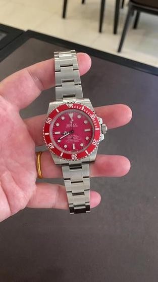 Brand: Rolex Replica Model: Submariner Replica Model Number: Blaken Gender: Men's Case Case Shape: Round Case Diameter: 40 MM Case Color: Silver Case Material: Stainless Steel Bezel Color: Red Bezel Material: Ceramic Bezel: Fluted Winding Crown: Screw-down, Twinlock double waterproofness system Crystal: Scratch Resistant Sapphire Case Back: Solid Dial Dial: Red Dial Dial Markers: Index Hands: Luminous Dial Type: Analog Bracelet Band Material: Stainless Steel Band Color: Silver Band Name: Oyster, three-piece solid links Clasp: Rolex Folding Oysterclasp Movement Movement: Automatic, Swiss, Top Swiss Precision: Deviation: Asian (± 30 - 60 sec/day), Swiss (± 15 - 30 sec/day), 1:1 Clone (± 2 - 5 sec/day) Power reserve: Approximately 72 hours Functions: Hours, Minutes, Seconds, Stop-Seconds For Precise Time Setting, Chronometer Oscillator: Paramagnetic blue Parachrom hairspring. High-performance Paraflex shock absorbers Winding: Bidirectional self-winding via Perpetual rotor Additional Info Water Resistance: Asian:life waterproof, Swiss: 100 meters, Top: 300 m After-sales service Warranty: Asian: 1 Year, Swiss: 2 Years, 1:1 Clone: 5 Years Return Policy: If you are not satisfied with our product, please return your watch within 30 days for a full refund. See our return policy for details. -