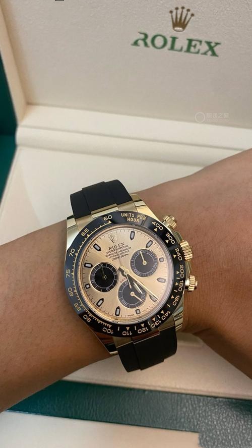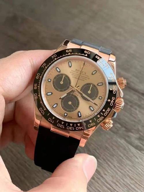I'm really impressed with this Rolex Daytona replica. The pink dial is stunning and the black bezel complements it perfectly.