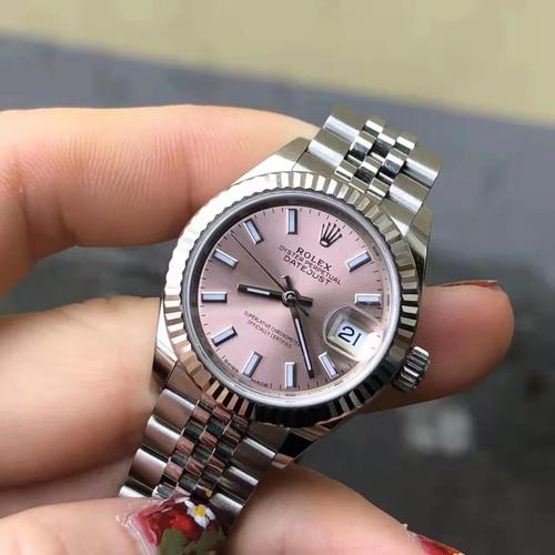 Brand: Rolex Replica Model: Datejust Replica Model Number: M278274 0014 Gender: Lady Case Case Shape: Round Case Diameter: 31MM Case Color: Silver Case Material: Stainless Steel Bezel Color: Silver Bezel Material: Stainless Steel Bezel: Fluted Crystal: Scratch Resistant Sapphire Case Back: Solid Dial Dial: Pink Dial Dial Markers: Sticks Hands: Luminous Dial Type: Analog Bracelet Band Material: Stainless Steel Band Color: Silver Band Name: Jubilee, five-piece links Clasp: Rolex Folding Oysterclasp Movement Movement: Automatic, Swiss, Top Swiss Precision: Deviation: Asian (± 30 - 60 sec/day), Swiss (± 15 - 30 sec/day), 1:1 Clone (± 2 - 5 sec/day) Power reserve: Approximately 72 hours Functions: Hours, Minutes, Seconds, Instantaneous Date With Rapid Setting, Stop-Seconds For Precise Time Setting, Chronometer Oscillator: Paramagnetic blue Parachrom hairspring. High-performance Paraflex shock absorbers Winding: Screw-down, Twinlock double waterproofness system Additional Info Water Resistance: Asian:life waterproof, Swiss: 100 meters, Top: 300 m Box: Comes with Original Box After-sales service Warranty: Asian: 1 Year, Swiss: 2 Years, 1:1 Clone: 5 Years Return Policy: If you are not satisfied with our product, please return your watch within 30 days for a full refund. See our return policy for details. -