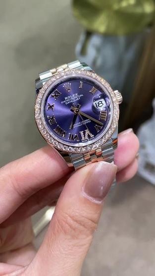 I'm absolutely in love with my new Rolex Datejust 31mm. The combination of stainless steel and the purple dial is just perfect. It's a timeless piece that I'll treasure forever.