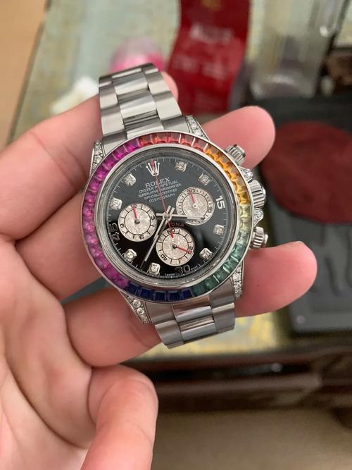 This Daytona is a work of art. The rainbow sapphire bezel is mesmerizing, and the black dial adds a sophisticated touch. The white gold case feels substantial but not too heavy. My only minor complaint is that the clasp could be slightly smoother, but overall, it’s perfection.