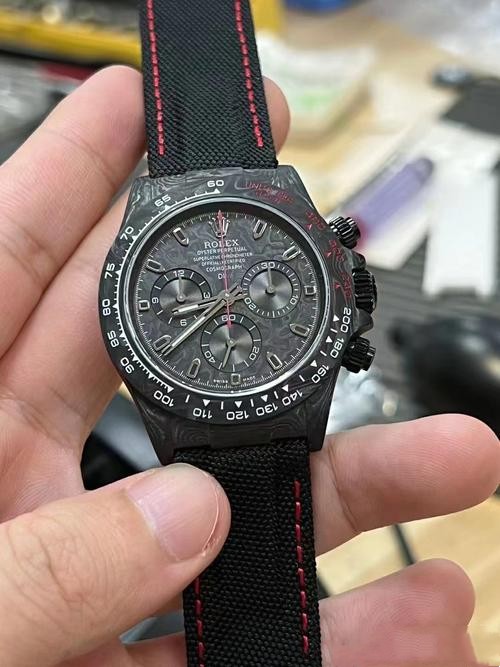 This product is based on the Speedster limited edition. The case is made of aviation-grade carbon fiber and high-strength artificial fiber composite materials. It is both lightweight (25% lighter than the original) and impact-resistant. The bezel has a forged carbon texture with a matte metal texture. The gradient gray matte dial is equipped with a three-dimensional time scale with Super-LumiNova® luminous coating, a red chronograph hand and a Speedster exclusive scale, which is highly recognizable in dark environments. The built-in custom Cal.4130 automatic chronograph movement has an average daily error of ±2 seconds, and the chronograph button feels comparable to the original. The strap innovatively combines carbon fiber skeleton and flexible artificial fiber, and the fit is increased by 30%. It is equipped with a DIW custom folding buckle and laser-etched limited number. The sapphire glass is coated with an anti-glare film, the ceramic chronograph ring has a Mohs hardness of 9, and has been tested for 5ATM waterproof. The details are reproduced with the original brushed/polished double process, and the limited logo is synchronized with the authentic product to meet the collection-level reproduction process requirements.