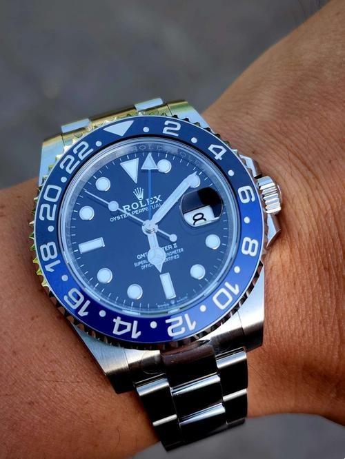 Brand: Rolex Replica Model: GMT Master II Replica Model Number: 126710 Gender: Men's Case Case Shape: Round Case Diameter: 40 mm Case Color: Silver Case Material: Stainless Steel Bezel Color: Blue Bezel: Ceramic Winding Crown: Screw-down, Triplock triple waterproofness system Crystal: Scratch Resistant Sapphire Case Back: Solid Dial Dial Color: Blue Dial Dial Markers: Dot Dial Type: Analog Hands: Luminous Bracelet Band Material: 904L Stainless Steel Band Name: Oyster, three-piece solid links Clasp: Rolex Folding Oysterclasp Movement Movement: Asian,Swiss,Top Precision: Deviation: Asian (± 30 - 60 sec/day), Swiss (± 15 - 30 sec/day), 1:1 Clone (± 2 - 5 sec/day) Power reserve: Approximately 70 hours Functions: Hours, Minutes, Seconds, Instantaneous date, Stop-Seconds For Precise Time Setting, Chronometer Oscillator: Paramagnetic blue Parachrom hairspring. High-performance Paraflex shock absorbers Winding: Bidirectional self-winding via Perpetual rotor Additional Info Water Resistance: Asian:life waterproof, Swiss: 100 meters, Top: 300 m After-sales service Warranty: Asian: 1 Year, Swiss: 2 Years, 1:1 Clone: 5 Years Return Policy: If you are not satisfied with our product, please return your watch within 30 days for a full refund. See our return policy for details. -