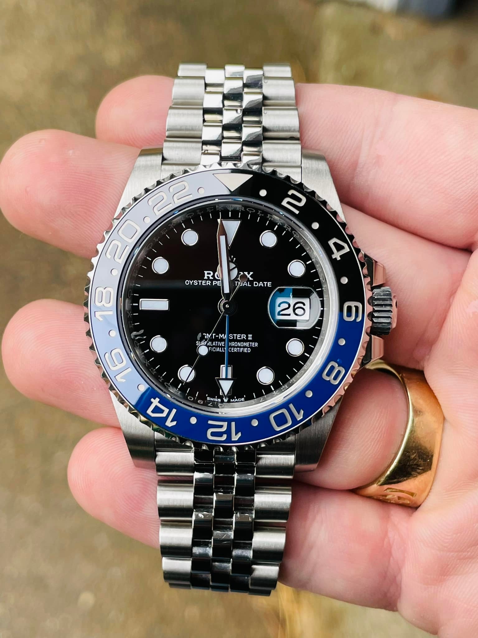 Looks stunning in person. The black and blue bezel is perfect, and it keeps time like a champ. Feels solid on the wrist.