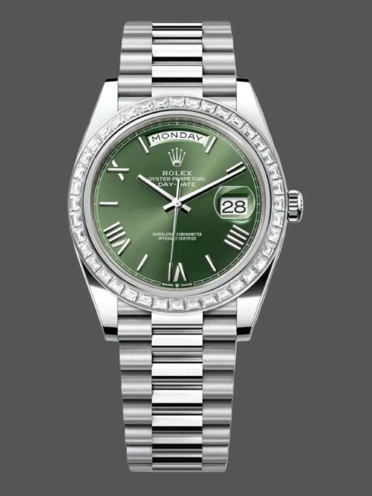 Rolex Day-Date 40 Platinum Arabic Numerals Green with Diamonds 228396tbr