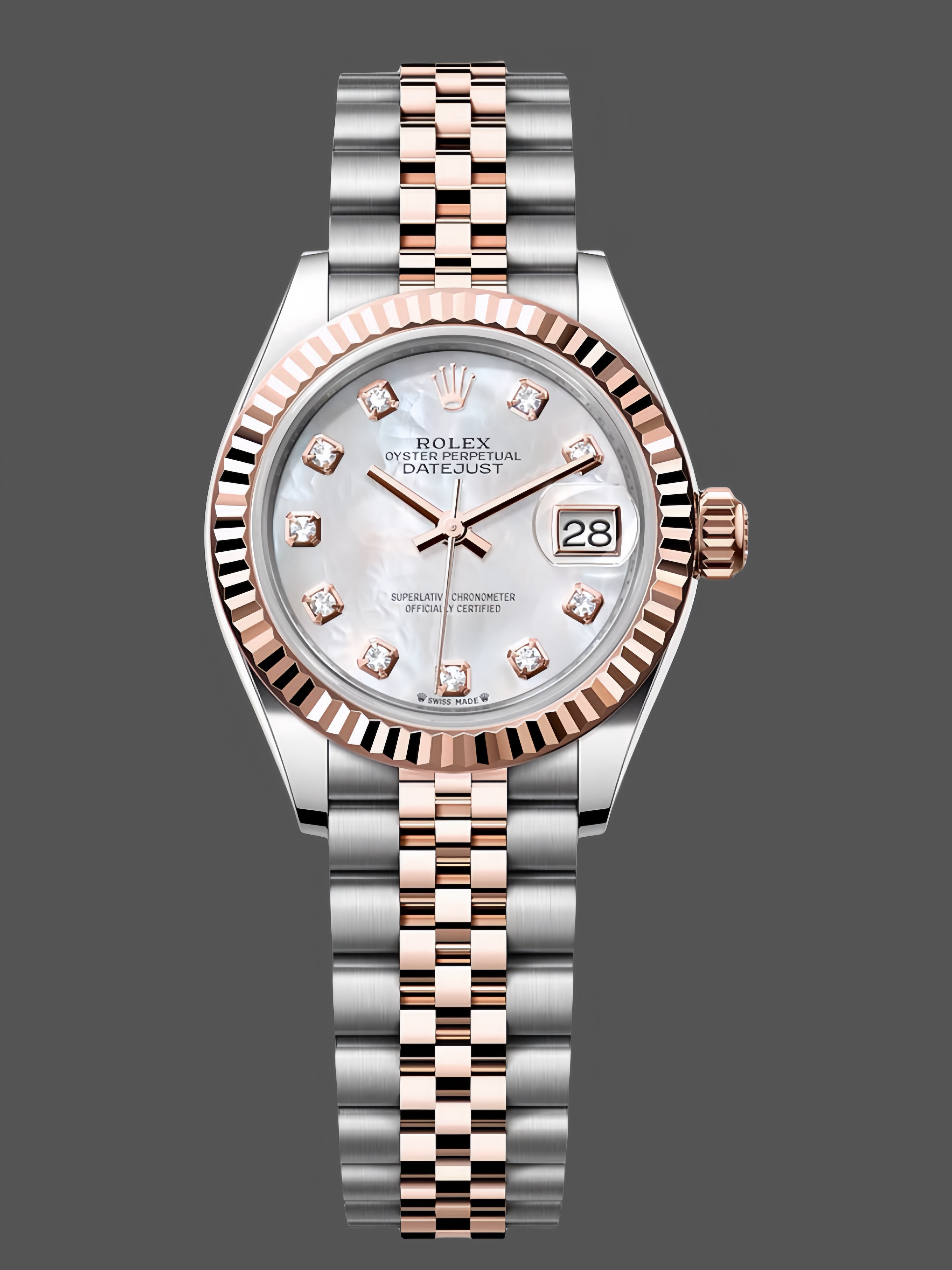 Rolex Datejust 28mm Stainless Steel and Everose Gold 279171 0013 Mop Diamond Jubilee