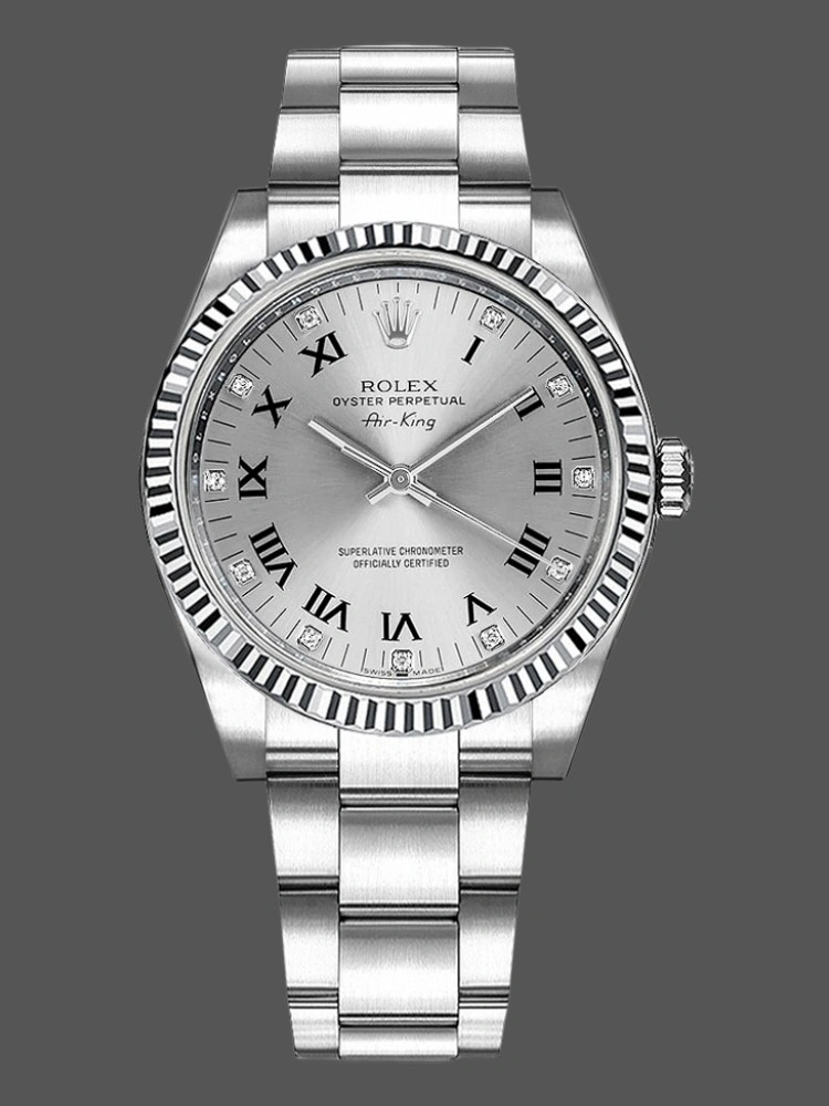Rolex Oyster Perpetual Air-King 114234 Silver Roman Diamond Dial 41mm Replica Watch