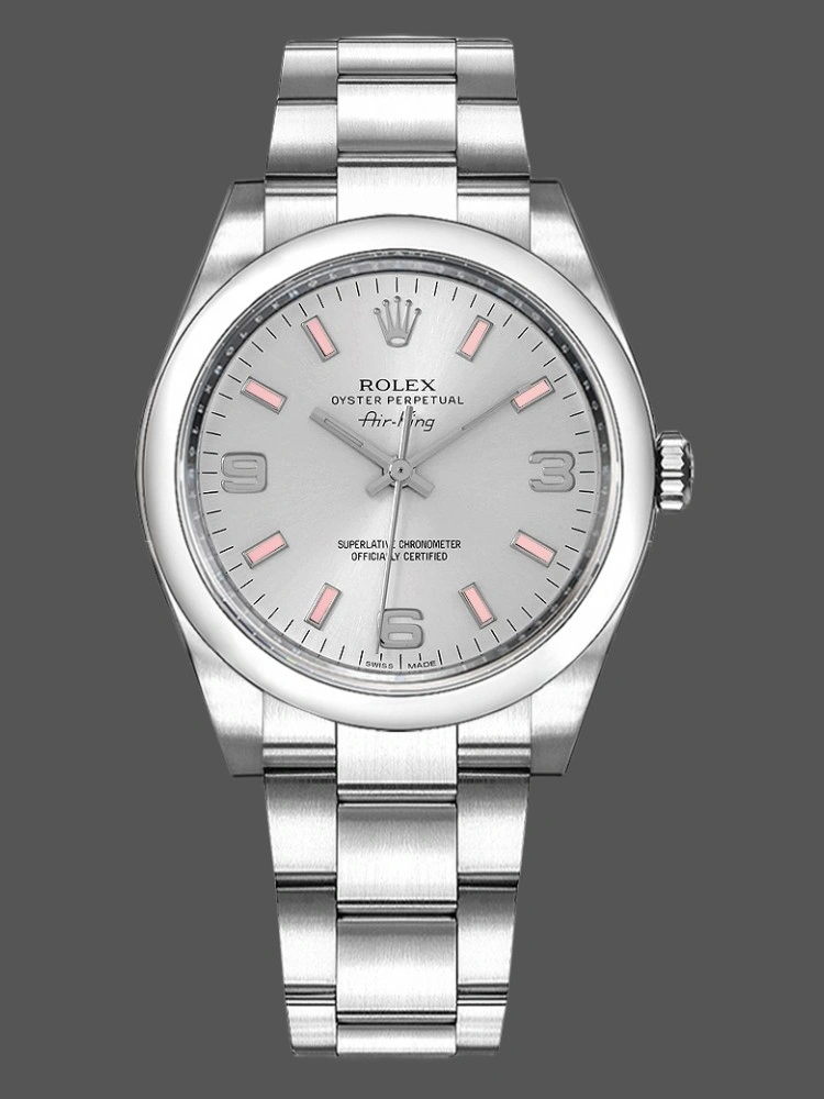 Rolex Oyster Perpetual Air-King 114200 Silver Dial Pink Baton 34mm Unisex replica watch