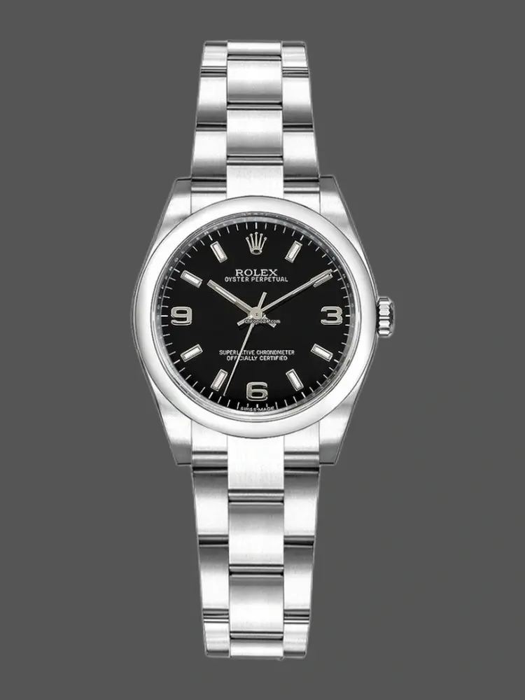 Rolex Oyster Perpetual 177200 Black Index Dial Domed Bezel 31mm Lady Replica Watch
