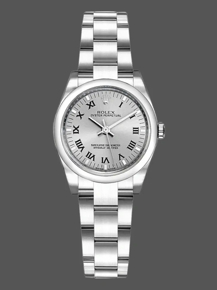 Rolex Oyster Perpetual 176200 Rhodium Grey Roman Numeral Dial 26mm Lady Replica Watch