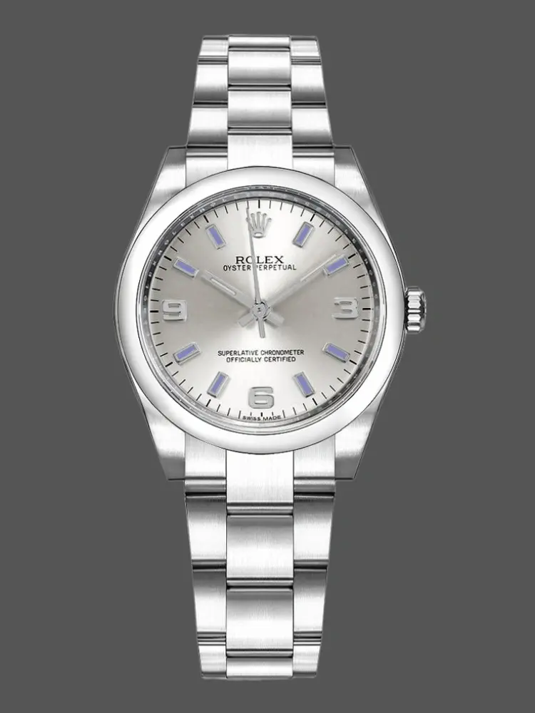 Rolex Oyster Perpetual 177200 Silver Dial Blue Markers 31mm Lady Replica Watch
