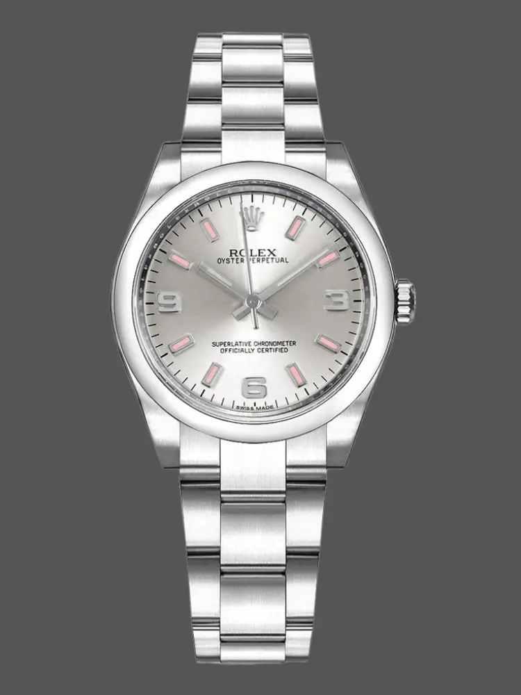 Rolex Oyster Perpetual 177200 Silver Dial Pink Markers 31mm Lady Replica Watch