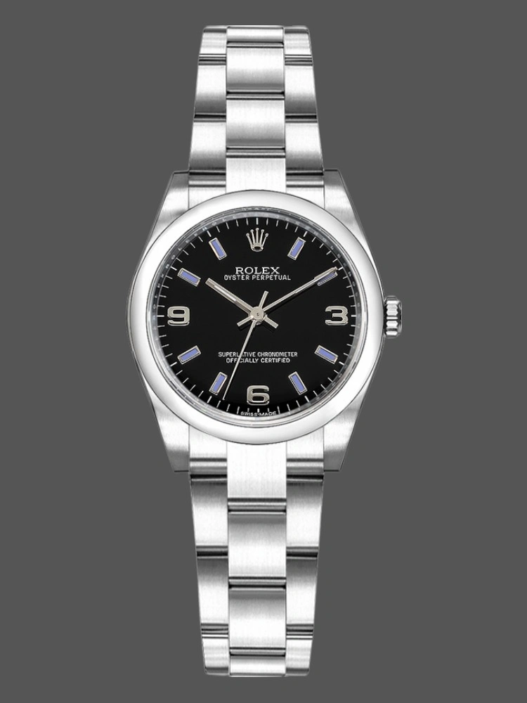 Rolex Oyster Perpetual 177200 Black Dial Blue Baton 31mm Lady Replica Watch