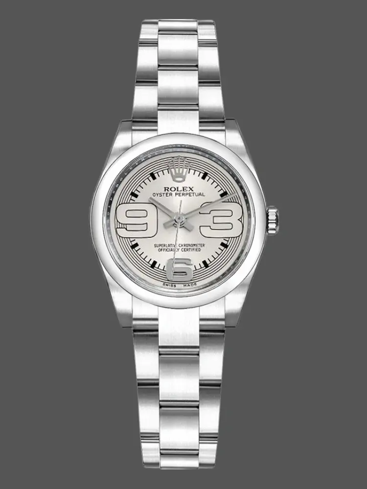 Rolex Oyster Perpetual 177210 Silver Dial Blue Hour Markers 31mm Lady Replica Watch