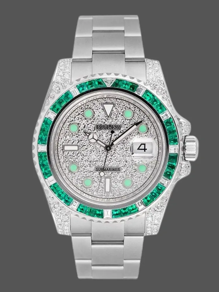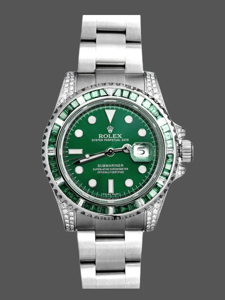 Rolex Submariner Date 116610LN Custom Diamond Stainless Steel Green Dial 40MM Mens Replica Watch