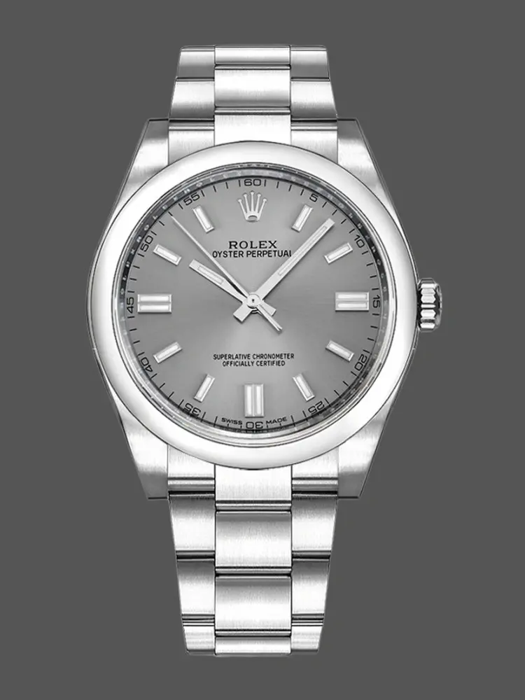 Rolex Oyster Perpetual 116000 Rhodium Grey Dial 36mm Unisex Replica Watch