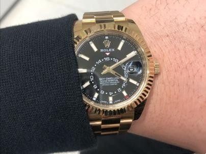 • Rolex Sky-Dweller 326938 Yellow Gold Black Dial 42mm Mens Replica Watch