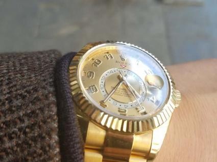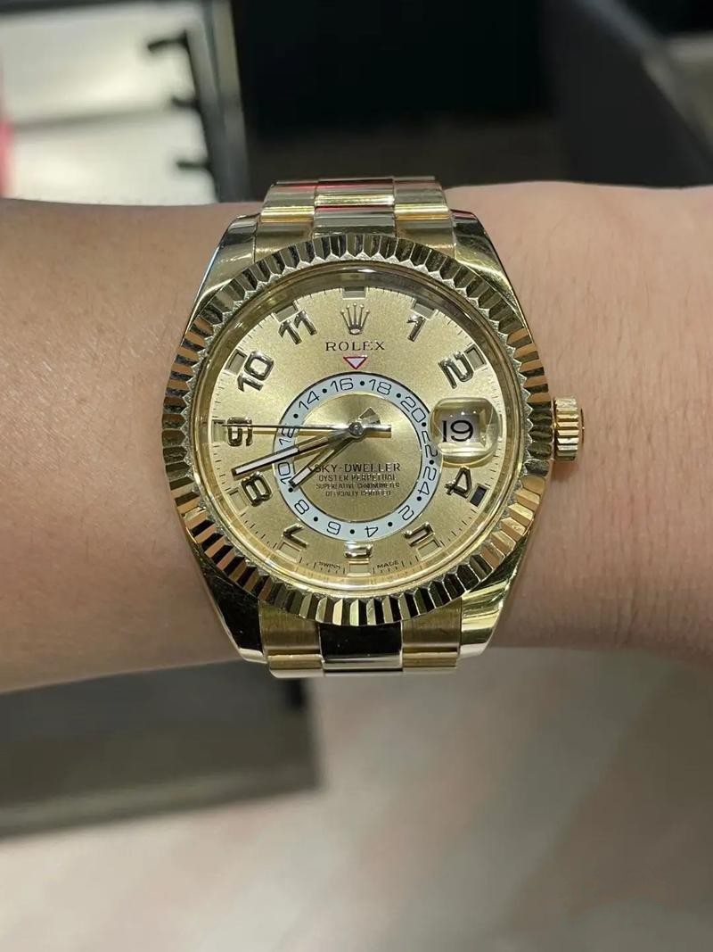 • Rolex Sky-Dweller 326938 Yellow Gold Champagne Arabic Dial 42mm Mens Replica Watch