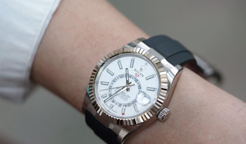 I’m really happy with my Rolex Sky Dweller! The white gold and white dial look amazing, and the Oysterflex bracelet is very comfortable. The watch is precise and the dual time zone feature is very useful.