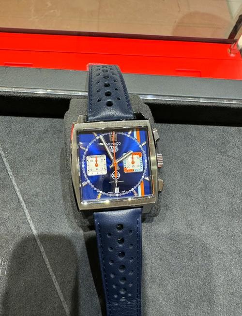 The strap is made of perforated blue calfskin replicating the original, with a stainless steel folding buckle and double safety buttons, fitting the wrist and echoing the racing theme design. The waterproof performance is up to 100 meters, meeting daily waterproof needs35. The replica version accurately restores the blue and orange color details, case layering craftsmanship and square contour recognition of the Gulf joint elements, presenting the rebellious spirit and collection value of the Monaco series with high cost performance, and is specially designed for watch lovers who pursue classic racing aesthetics and practical functions.