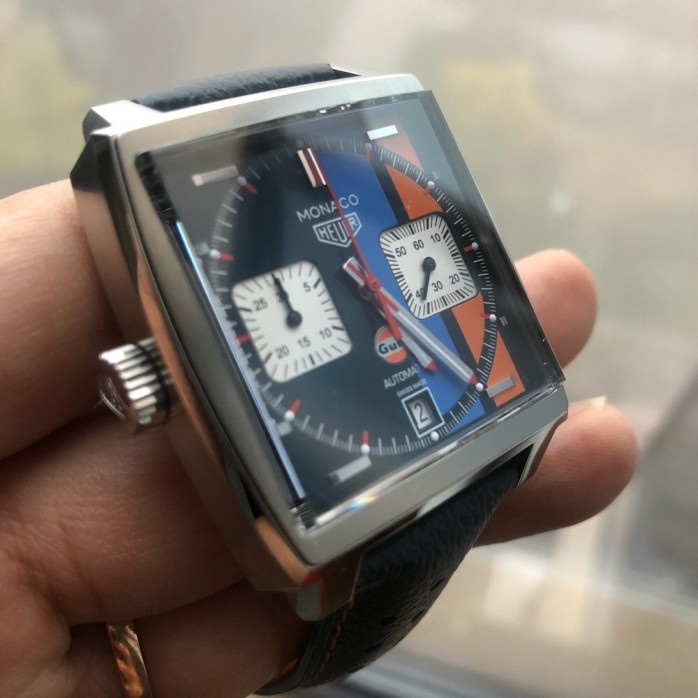 Love this Monaco rep! The brushed steel finish looks legit, and the sapphire crystal is super clear. Shipped faster than my Amazon orders lol. Defo buying again.