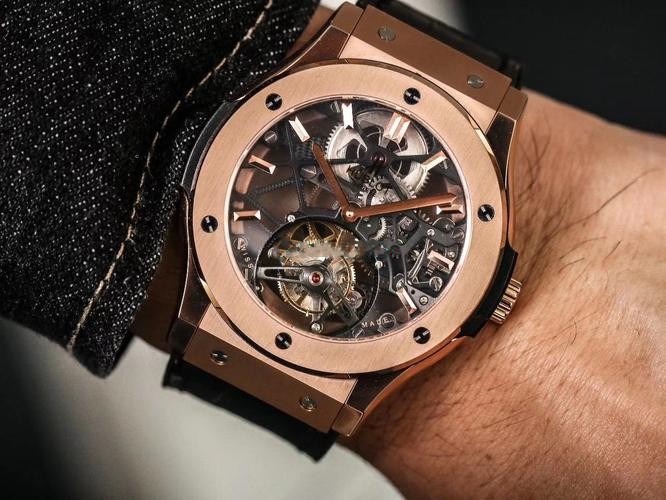This Hublot Classic Fusion Skeleton Tourbillon is a masterpiece! The skeleton dial is mesmerizing, and the gold case is just stunning. It's definitely a statement piece, and I've gotten so many compliments on it. So glad I finally pulled the trigger!