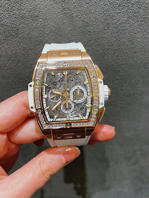 Brand: Hublot 1:1 Clone Collection: Spirit of Big Bang Model: Chronograph 42mm Model Number: 642.OE.2010.RW.1204 Gender: Men's General Watch Style: Luxury Sport Chronograph Case Size: 42 mm Case Shape: Tonneau Display: Analog Crystal Type: Sapphire-Style Crystal with Clear AR Look Wear Profile: Curved Case for Comfortable Fit Case Case Material: Rose Gold-Tone Case Construction Case Finish: Satin-Brushed with Polished Facets Bezel: Diamond-Set Bezel Layout (Pavé Style) Bezel Screws: H-Style Screw Accents Case Side Inserts: Dark Composite-Style Side Modules Crown: Signed Crown with Grip Edge Pushers: Chronograph Pushers (Start/Stop + Reset) Caseback: Exhibition Back (Sapphire Window) Caseback Engraving: Spirit of Big Bang Layout Engraving Dial Dial Type: Skeleton Dial (Openworked) Dial Color: Grey/Black Skeletonized Movement View Chapter Ring: Light-Tone Ring with Minute Markers Hour Markers: Applied Baton Indexes Hands: Rose Gold-Tone Hands with Lume Fill Sub-Dials: 3-Register Chronograph Layout Date Window: Angled Date Display at ~4:30 Lume: Hands & Index Luminous Fill Strap & Clasp Strap Type: Rubber Strap Strap Color: White Strap Texture: Ribbed / Sport Groove Pattern Strap Feature: Quick Swap-Friendly End Links Clasp: Deployant Folding Clasp Clasp Detail: Signed Clasp Plate Movement Movement Type: Automatic Chronograph Caliber Options: Asian Automatic Chronograph / 1:1 Clone Caliber HUB4700 Chronograph Control: Start/Stop + Reset Pushers Power Reserve: Approx. 50 Hours Beat Rate: 28,800 vph (configuration dependent) Jewels: 31 Jewels Accuracy (Daily): Deviation: Asian (± 30 - 60 sec/day), 1:1 Clone (± 2 - 5 sec/day) Functions Time: Hours, Minutes, Small Seconds Chronograph: Central Chronograph Seconds + Sub-Dial Counters Date: Yes Water Resistance Water Resistance: Asian: Daily splash resistant; 1:1 Clone: 100 meters After-Sales Service Warranty: Asian: 1 Year / 1:1 Clone: 5 Years QC: Function check + alignment inspection before shipping Support: After-sales troubleshooting with photo/video verification Packaging: Watch, Protective Wrap, Manual Card, Warranty Card Return Policy: If you are not satisfied with our product, please return your watch within 30 days for a full refund. See our return policy for details. Hublot Spirit of Big Bang Chronograph 642.OE.2010.RW.1204