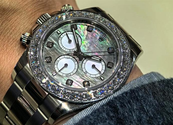 • Rolex Daytona M126579RBR-0001, diamond bezel and chronograph subdials shown.
