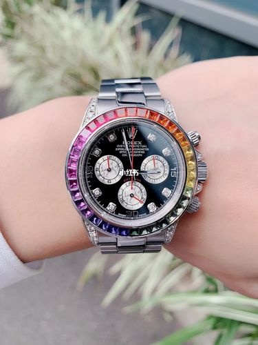 This Daytona is a work of art. The rainbow sapphire bezel is mesmerizing, and the black dial adds a sophisticated touch. The white gold case feels substantial but not too heavy. My only minor complaint is that the clasp could be slightly smoother, but overall, it’s perfection.