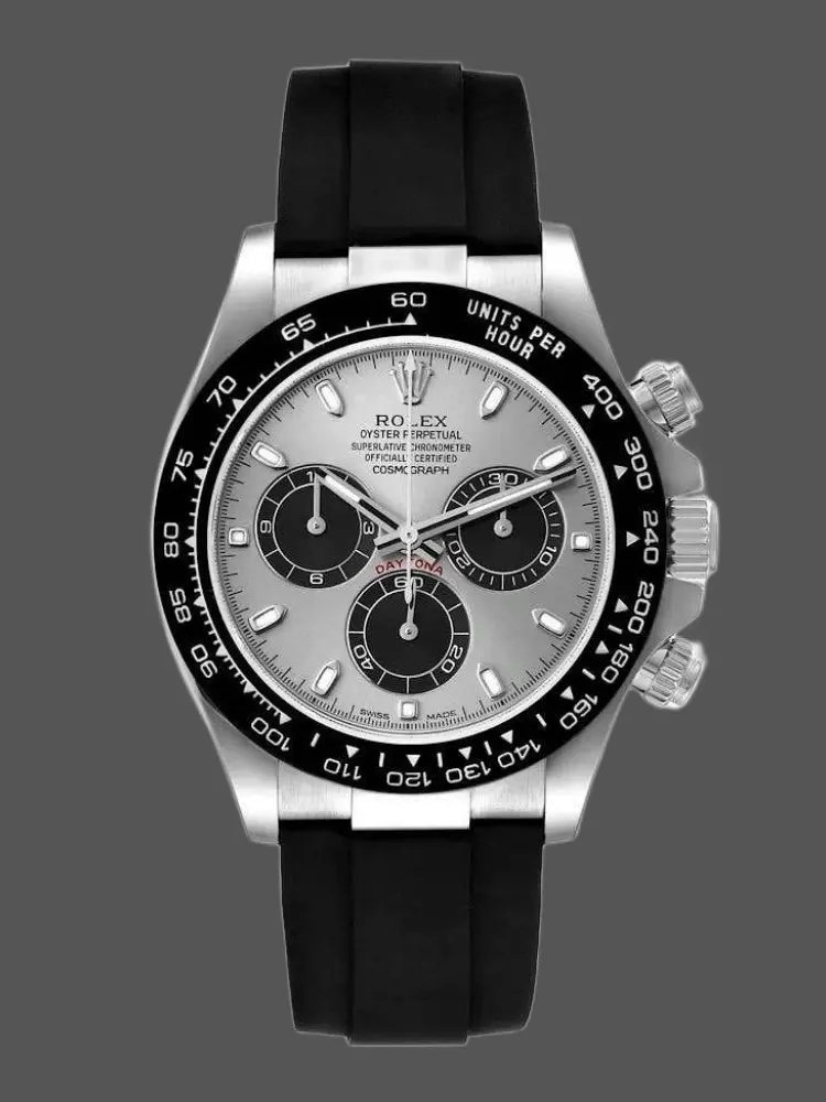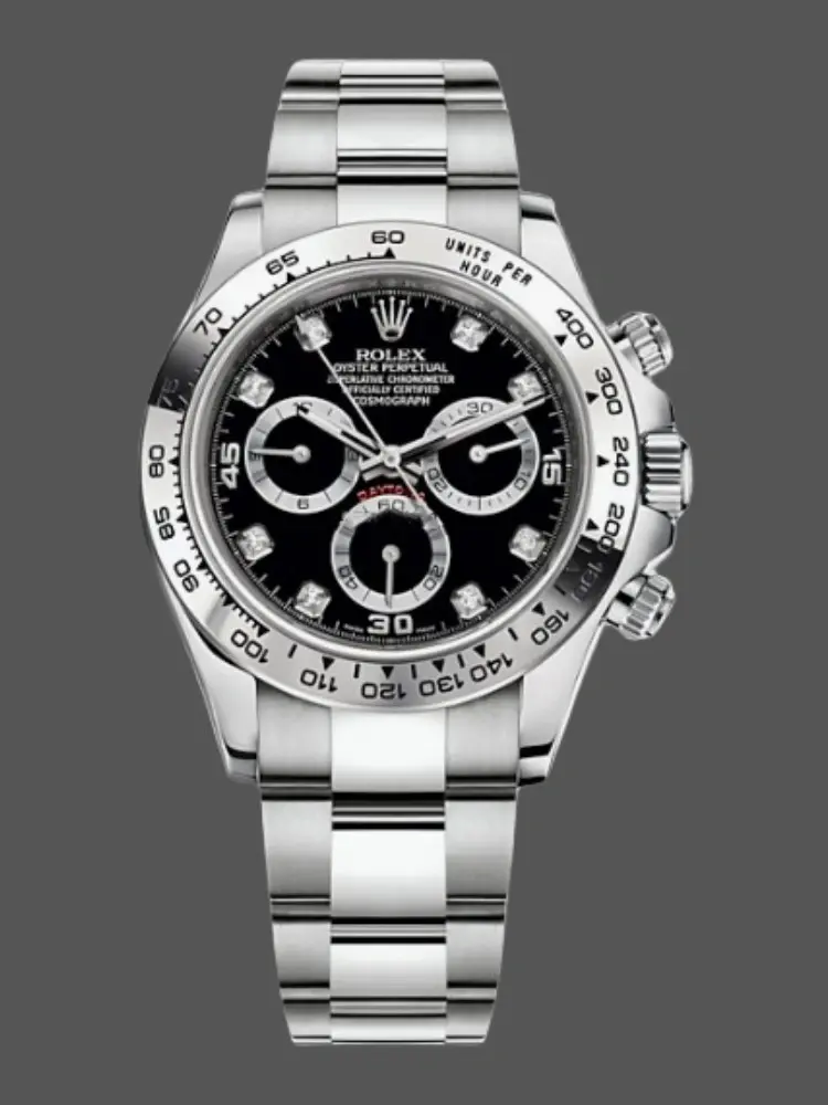 Brand: Rolex Replica Model: Daytona Replica Model Number: 126529LN Gender: Men's Case Case Shape: Round Case Diameter: 40 MM Case Color: Silver Case Material: Stainless Steel Bezel Color: Black Bezel Material: Ceramic Bezel: Smooth Winding Crown: Screw-down, Triplock triple waterproofness system Crystal: Scratch Resistant Sapphire Case Back: Solid Dial Dial: Black & White Dial Dial Markers: Index Hands: Luminous Dial Type: Analog Bracelet Band Material: Stainless Steel Band Color: Silver Band Name: Oyster, three-piece solid links Clasp: Rolex Folding Oysterclasp Movement Movement: Automatic, Swiss, Top Swiss Precision: Deviation: Asian (± 30 - 60 sec/day), Swiss (± 15 - 30 sec/day), 1:1 Clone (± 2 - 5 sec/day) Power reserve: Approximately 72 hours Functions: Hours, Minutes, Seconds, Stop-Seconds For Precise Time Setting, Chronometer Oscillator: Paramagnetic blue Parachrom hairspring. High-performance Paraflex shock absorbers Winding: Bidirectional self-winding via Perpetual rotor Additional Info Water Resistance: Asian:life waterproof, Swiss: 100 meters, Top: 300 m After-sales service Warranty: Asian: 1 Year, Swiss: 2 Years, 1:1 Clone: 5 Years Return Policy: If you are not satisfied with our product, please return your watch within 30 days for a full refund. See our return policy for details. -