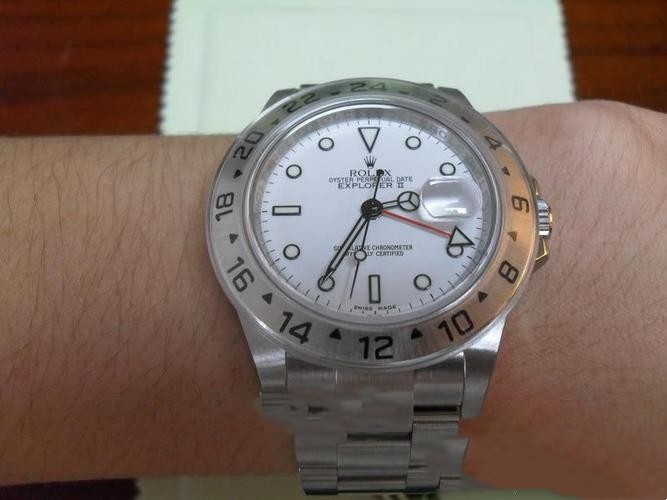 I'm really happy with this Rolex Explorer II replica. The stainless steel case is sturdy and the white dial looks sharp. It's a great watch for the price.
