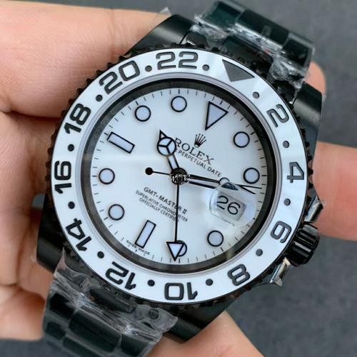 I've been looking for a high-quality watch for a while and this Rolex GMT Master II is exactly what I needed. The black PVD/DLC coating is very unique and the white dial adds a nice contrast. It's a stylish and functional watch.