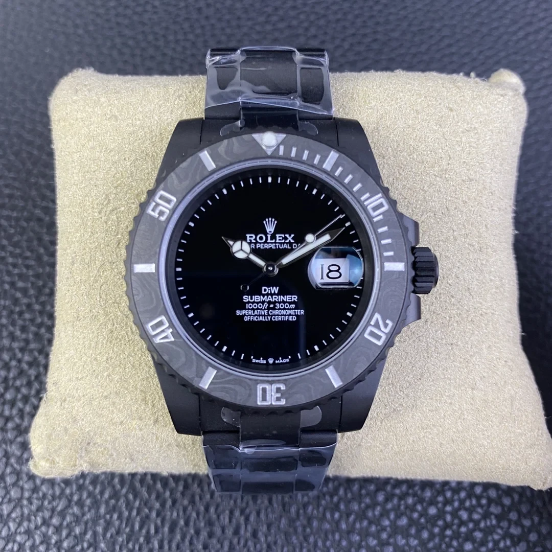 The DIW modified Submariner 116610LB replica watch represents the perfect fusion of street fashion with watchmaking expertise. The 40mm stainless steel case receives hand polishing from German engineers while it combines with a parrot green carbon fiber bezel that features distinctive carbon fiber textures similar to personal signatures. The deep black dial beneath the sapphire mirror glows with Super-LumiNova luminous coating that produces a neon sign effect in darkness. The Asian 3135 movement receives DIW adjustments which result in timekeeping accuracy on par with Swiss Observatory standards. The modification master DIW's original work receives perfect replication through every detail from the crown shoulder to the screw-in bottom cover. This timepiece represents more than a simple replica because it serves as the ultimate tribute to high-end modification culture. When you wear this watch you will become the most stylish street player who appreciates mechanical design.
